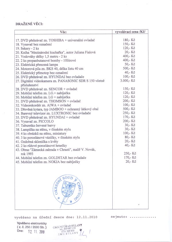 Vyhláška č. 028/2010 Okresní soud Chrudim
