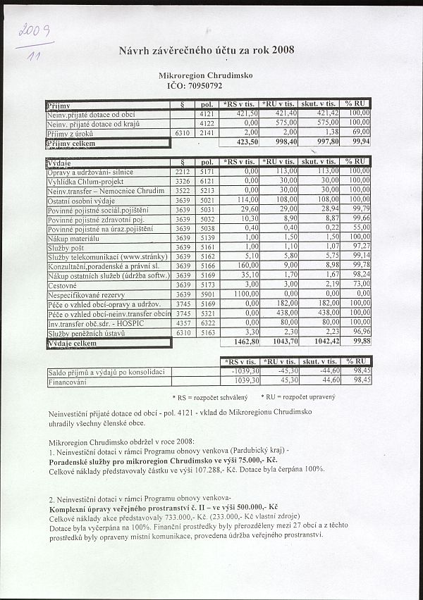 - MRCR Návrh závěrečného účtu Mikroregionu Chrudimsko za rok 2018 - 27.05.2019